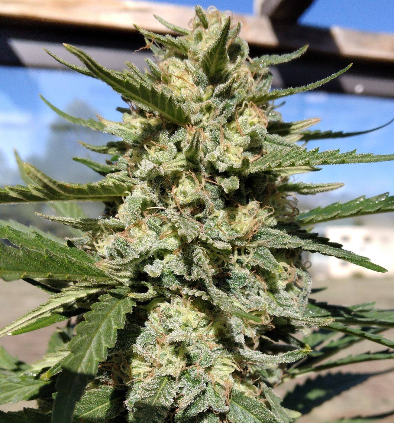This plant grows thick and dense flowers that sparkle with a generous crystal coverage. The round shaped buds are sticky and often show off orange hairs with the occasional hint of purple in cooler climates. Well, even small plants look impressive once flowering kicks in.