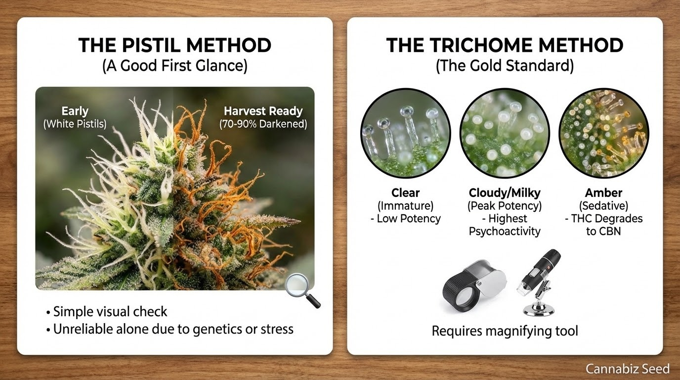 Pochopení toho, kdy sklízet konopí, je dovednost, kterou lze zdokonalit. Prozkoumáme, proč je načasování tak důležité, a osvojíme si dvě základní techniky pozorování, které používají všichni odborníci.