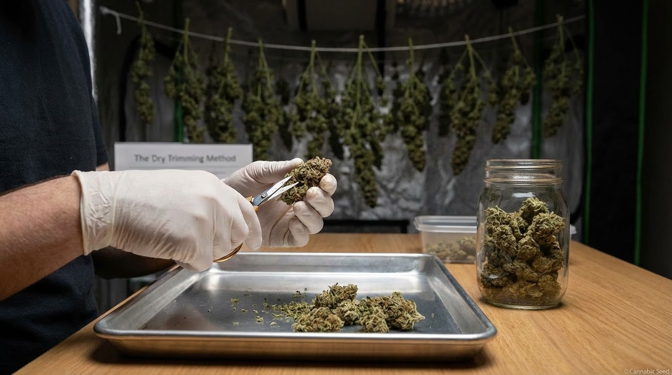Tačiau, jei jūsų džiovinimo patalpos sąlygos yra visiškai kontroliuojamos ir jūs siekiate gauti geriausią įmanomą aromatą ir skonį, tuomet sausas apkarpymas yra geriausias pasirinkimas. Tai reikalauja daugiau darbo, bet sklandūs, aromatingi rezultatai yra to verti.